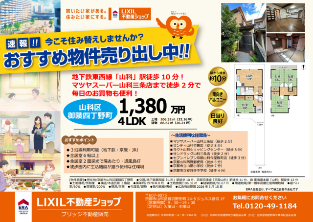 京都市山科区御陵四丁野町(1,380万円)